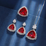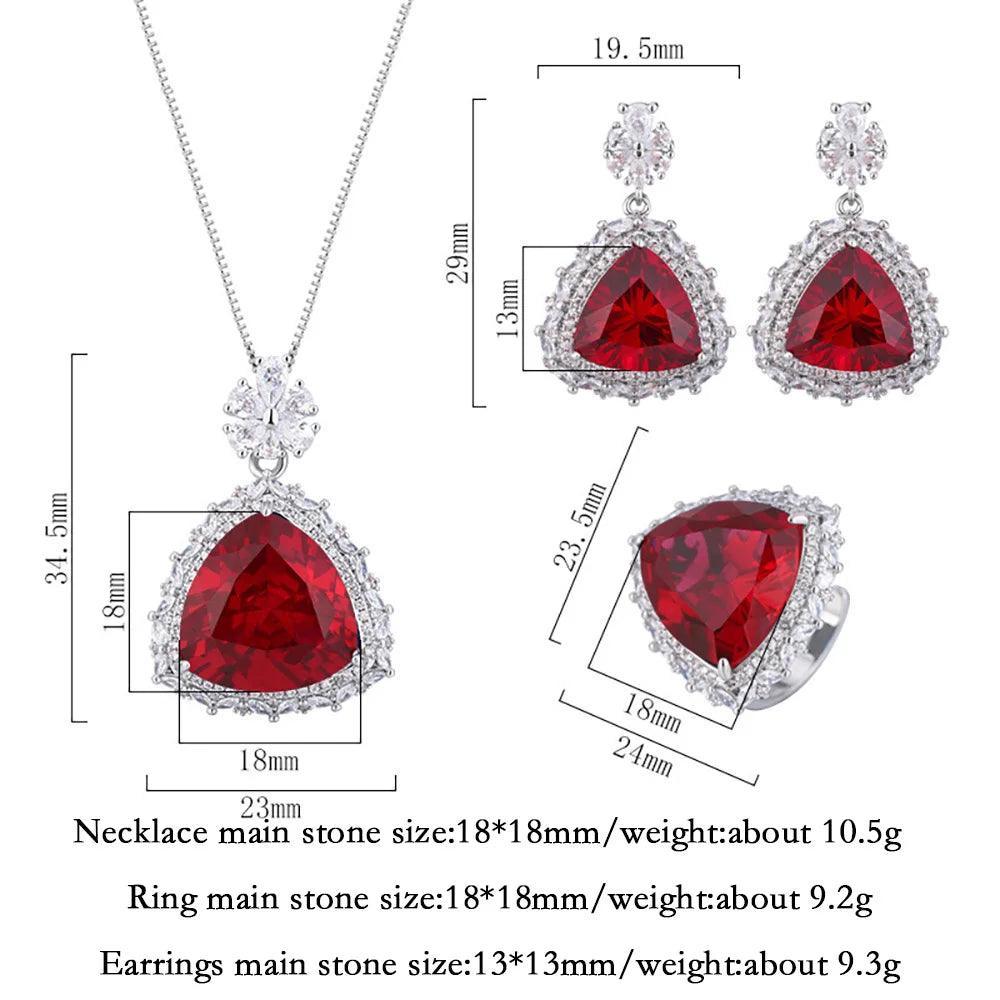 Attractive Vintage Triangle Lab Created Ruby Gemstone Necklace Pendant Ring Earrings, Party Fine Jewellery Set
