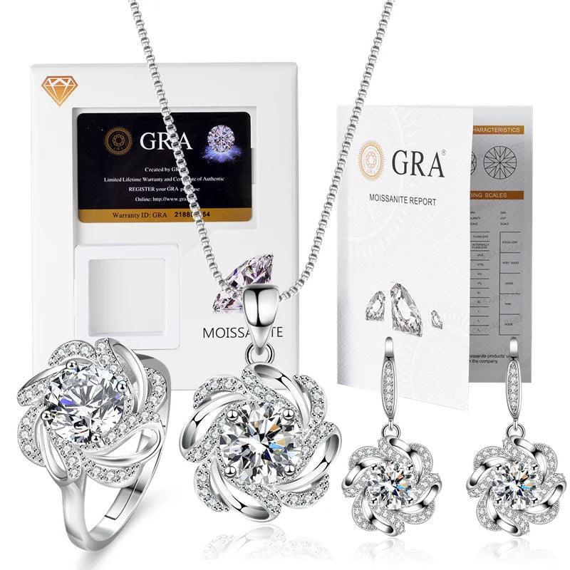 Sparkling Gra Certified Three-piece 1.0 Carat Moissanite Diamonds ring pendant necklace earrings Fine Jewellery Set