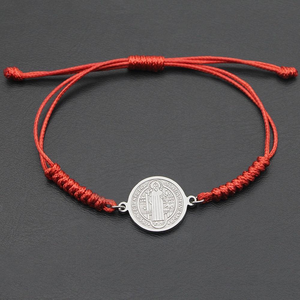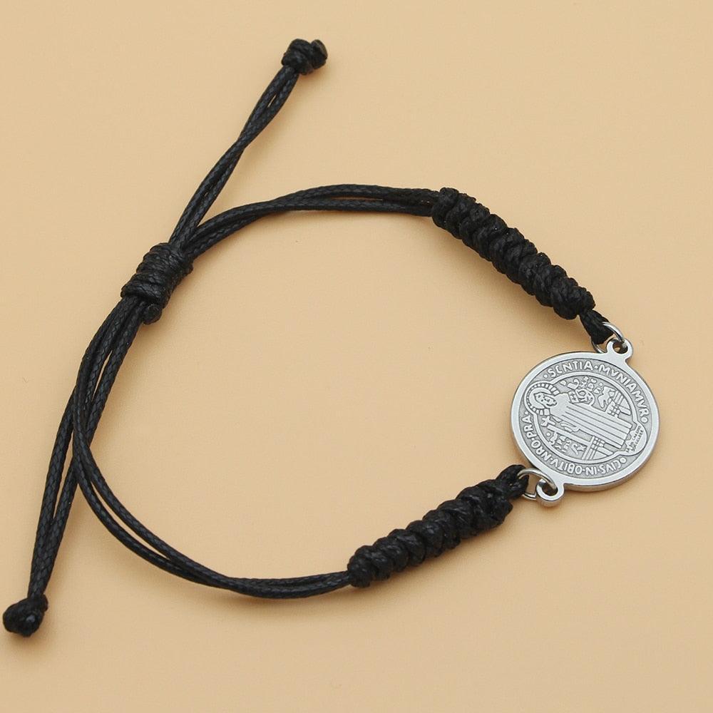 Catholic Religious Belief St. Benedict Cross Stainless Steel Bracelets Chinese Knot Bracelets for Men Women