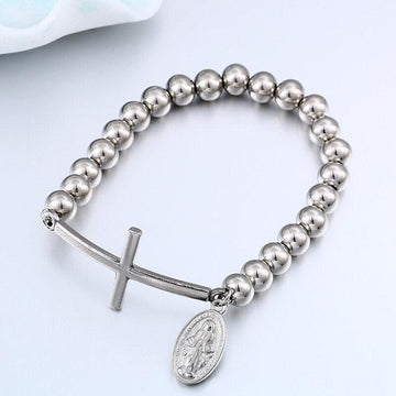 Stainless Steel Beaded Charming Cross Bracelets - Handmade Men Women Prayer Chain Jewellery