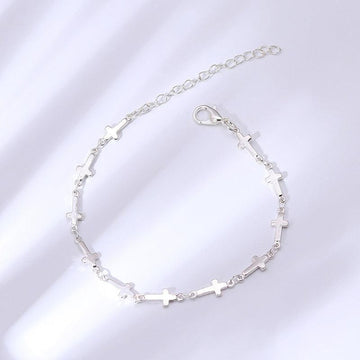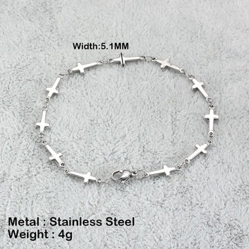 Best Seller - Christian Simple Chain Stainless Steel Cross Charm Bracelets Bangles - Religious Jewellery
