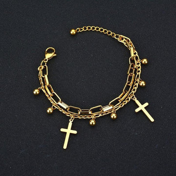 Fashion 316L Stainless Steel Gold Color Multilayer Cross Charm Bracelets For Women - Christian Jewellery