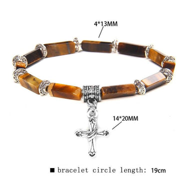 Fashion Cross Lapis lazuli, Natural Tiger Eye and Natural Stones Charms Pendant Bracelets - Christian Jewellery