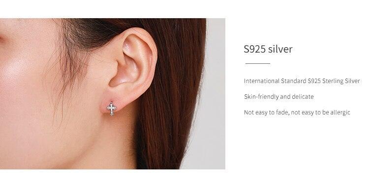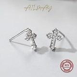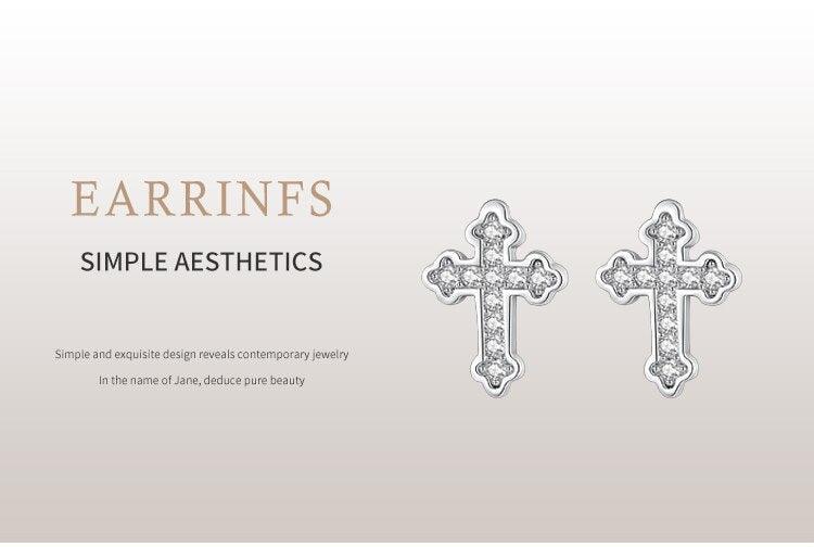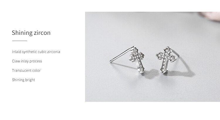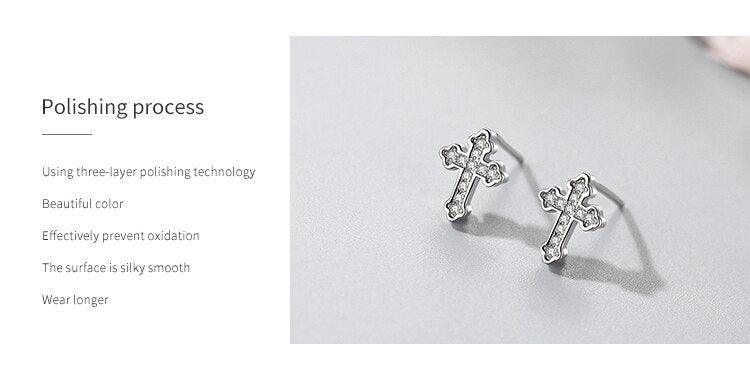 Authentic Silver Simple Shiny AAA+ Zircon Mini Cute Cross Stud Earring for Women - Fashion Christian Fine Jewellery