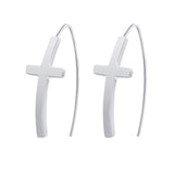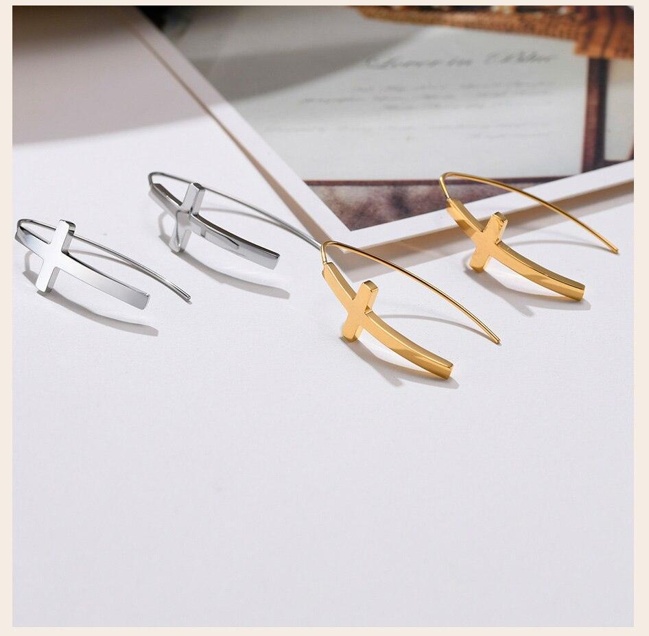 Cross Fish Hoop Earrings, Stainless Steel Cruz Earring Dangle ,Simple Wire Thread Minimalist Christian Jewellery