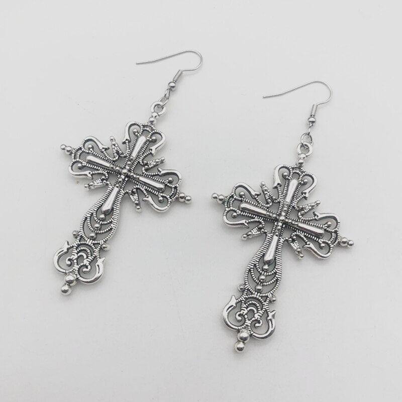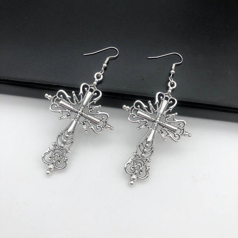 Gothic Design Dark Style Cross Pendant Earrings - Rock Punk Goth Fashion Christian Earrings For Women