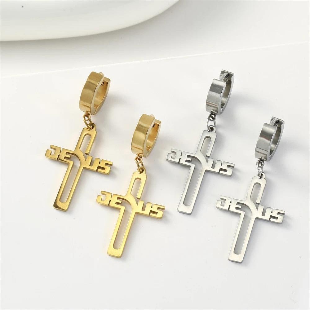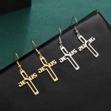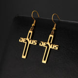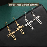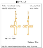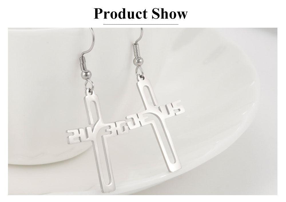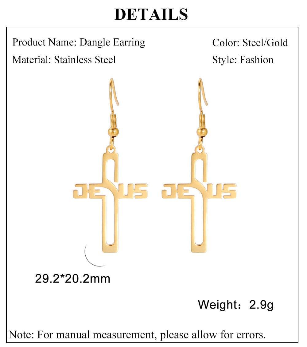 Stainless Steel Christian Jesus Cross Dangle Drop Earrings for Women - Religious Jewellery