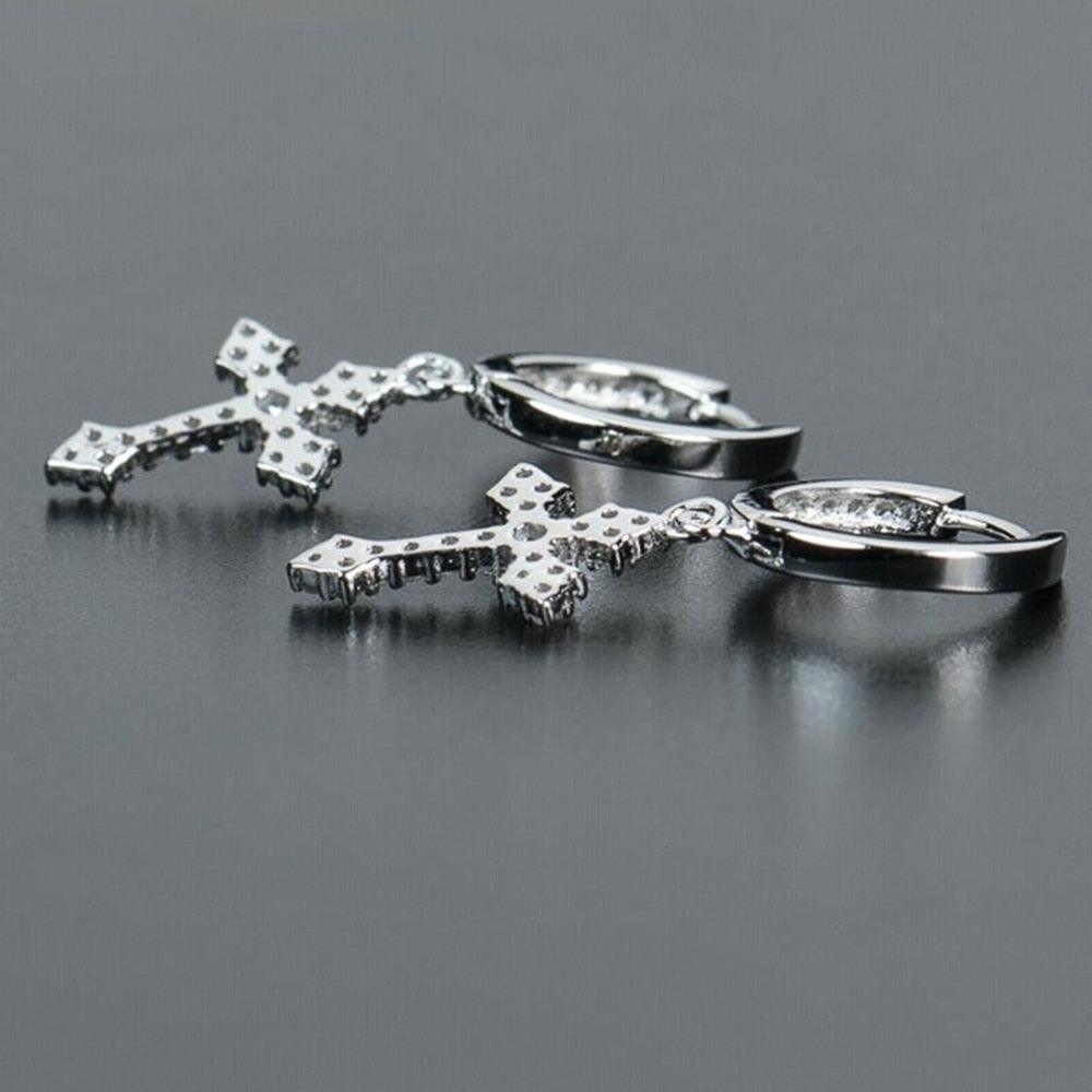 Stylish Christian Cross Drop Hoop Earrings Shiny AAA CZ Crystals High Quality Unisex Fashion Religious Jewellery
