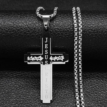 Classic Style Stainless Steel Christian Cross Pendant Necklace - Bible Amulet Banquet Jewellery