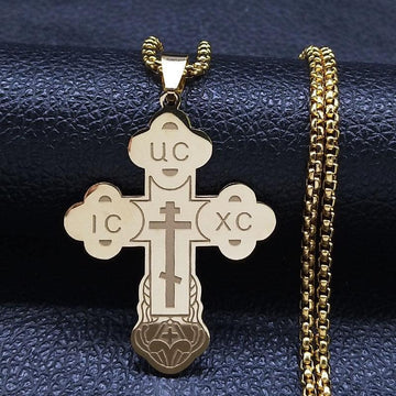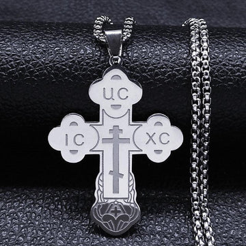 Christian Orthodox Cross Necklace Stainless Steel Jesus Religious Prayer Russian Chain Necklaces