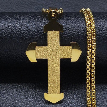 Amazing Cross Necklace For Men - Byzantine Gold Colour Stainless Steel Chain Catholic Crucifix Pendant