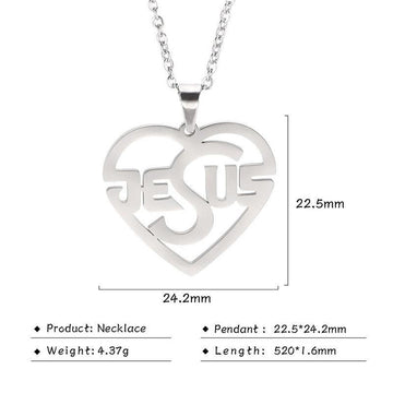 Charming Christian Jesus Heart Stainless Steel Pendant Necklace for Women - Religious Jewellery