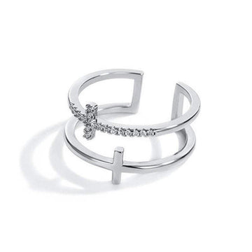 Elegant Silver Color Double Cross Flashing AAA Zircon Crytals Open Rings for Women - Christian Fashion Jewellery