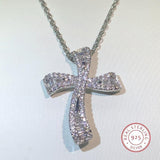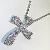 Classic Handmade Big Cross 925 Sterling Silver AAA+ Cubic Zirconia Diamonds Vintage Pendant Necklace