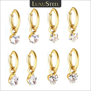 New Exquisite Stainless Steel White Cubic Zirconia Crystals Hoop Waterdrop Star Heart Round Earrings For Women and Girls A perfect addition to any outfit, these stunning earrings are crafted from high-quality stainless steel and feature sparkling white cubic zirconia crystals....