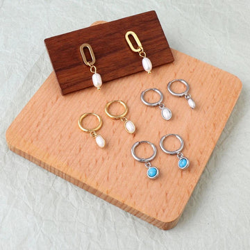 New Imitation Pearls Drop Hoop Earrings for Women Girls - Stainless Steel Irregular Oval Shape Fashion Gifts