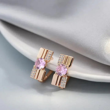 Luxury Vintage Design 14K Rolled Rose Gold Pink AAA Zircon Crystals Earrings For Women - Fine Jewellery
