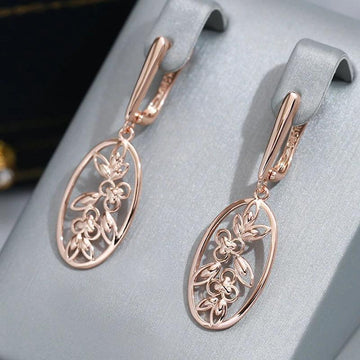 Gorgous 14K Filled Rose Gold Vintage Hollow Flower Long Drop Earrings For Women - Fine Jewellery
