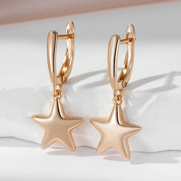Glossy Stars Filled Rose Gold of 14-Karat Purity Dangle Earrings For Women - Luxury Jewellery Long Earrings