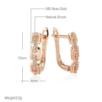 Charming Personality Chain Design Inlay with AAA White Zircon Diamonds 14K Rolled Rose Gold Earrings for Women