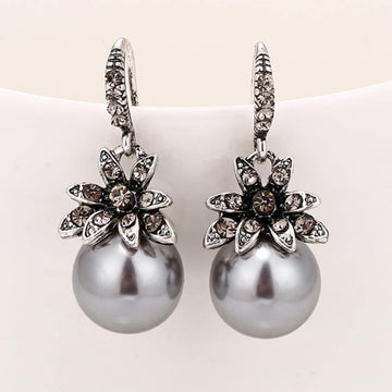 Exquisite Charming Fashion Imitation Pearl Earrings Inlaid Rhinestones