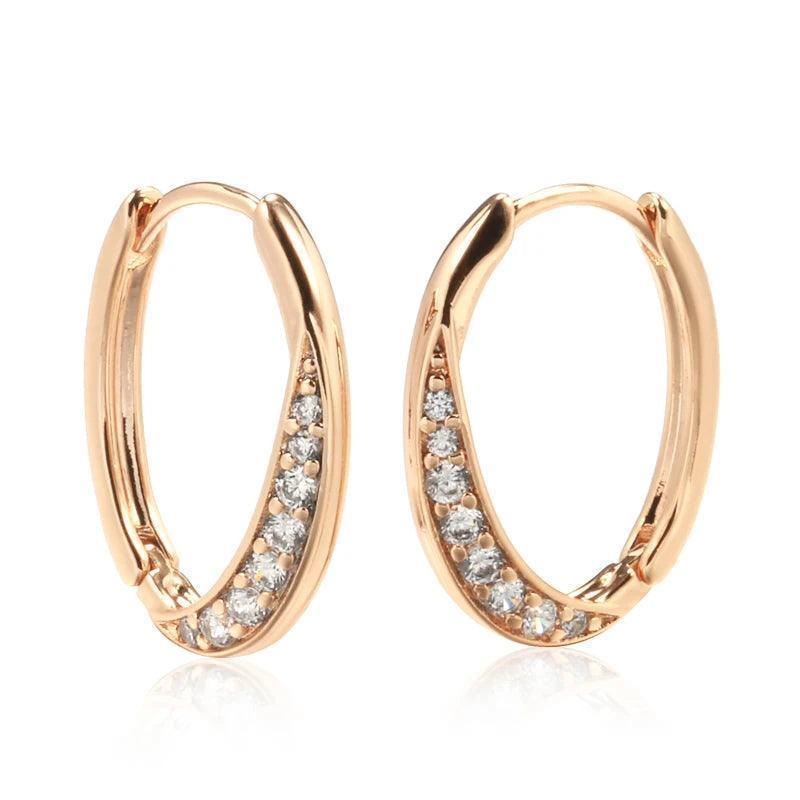Geometric Smooth Oval AAA Zircon Diamonds Hoop Earrings 14K Rolled Rose Gold Party Jewellery