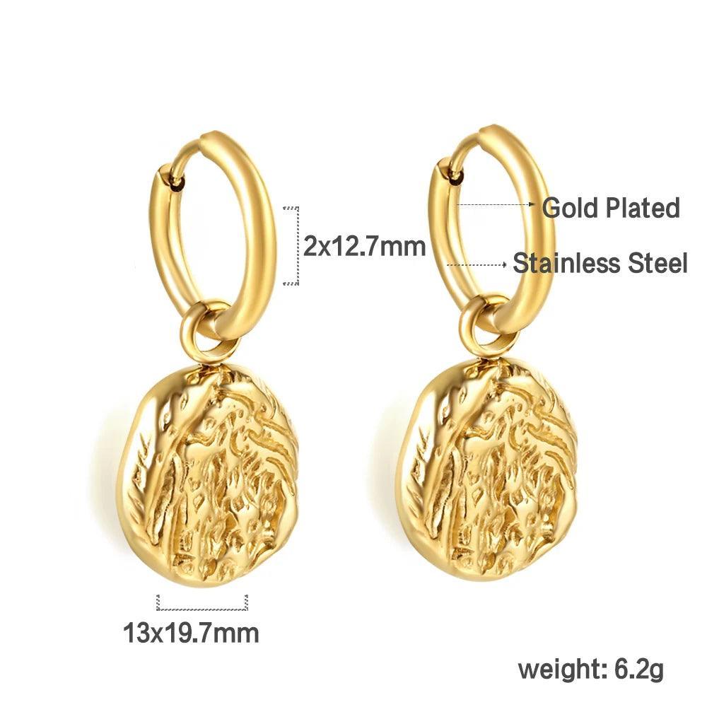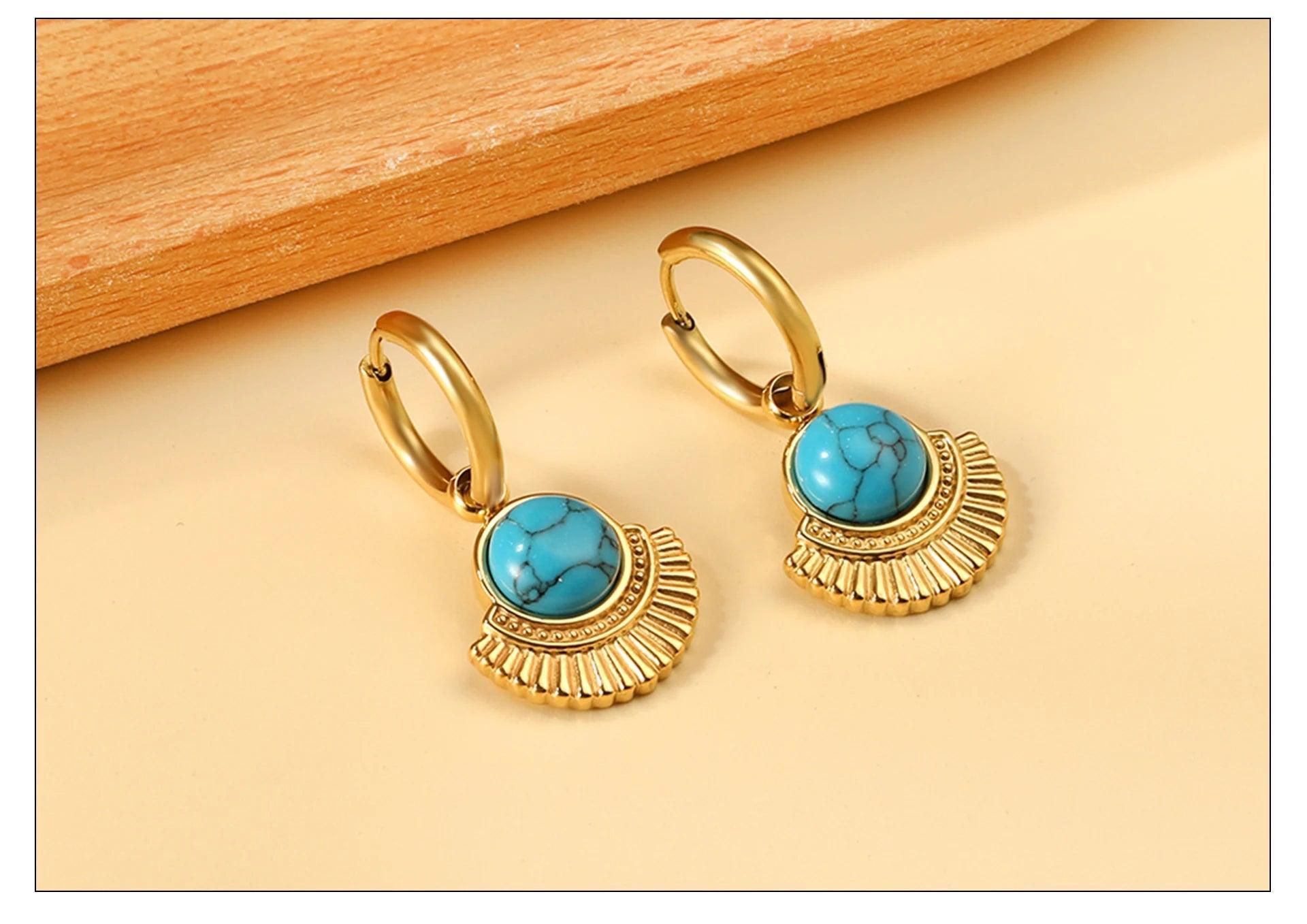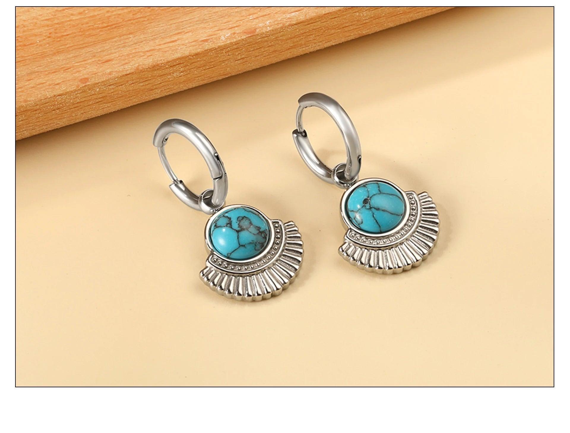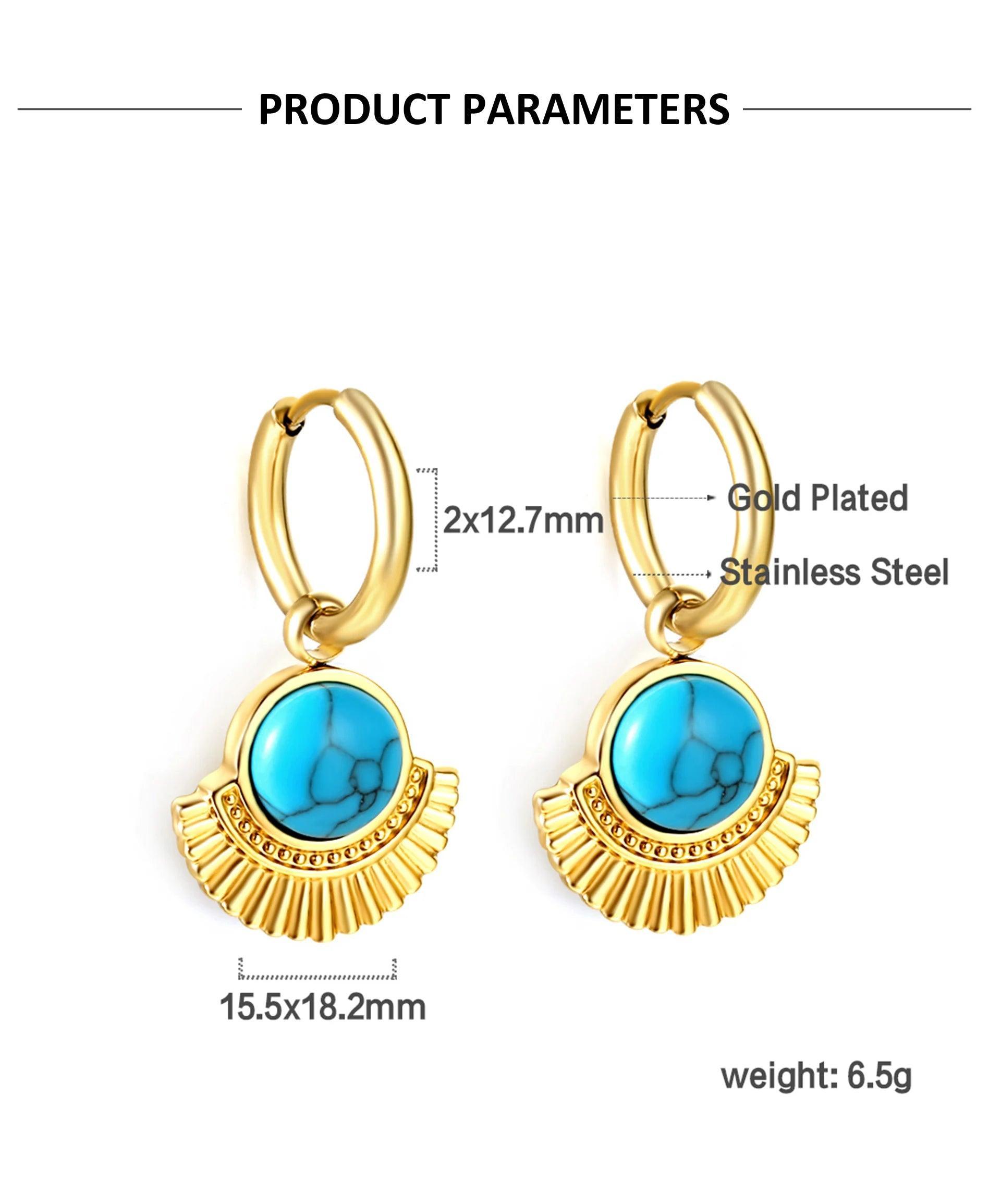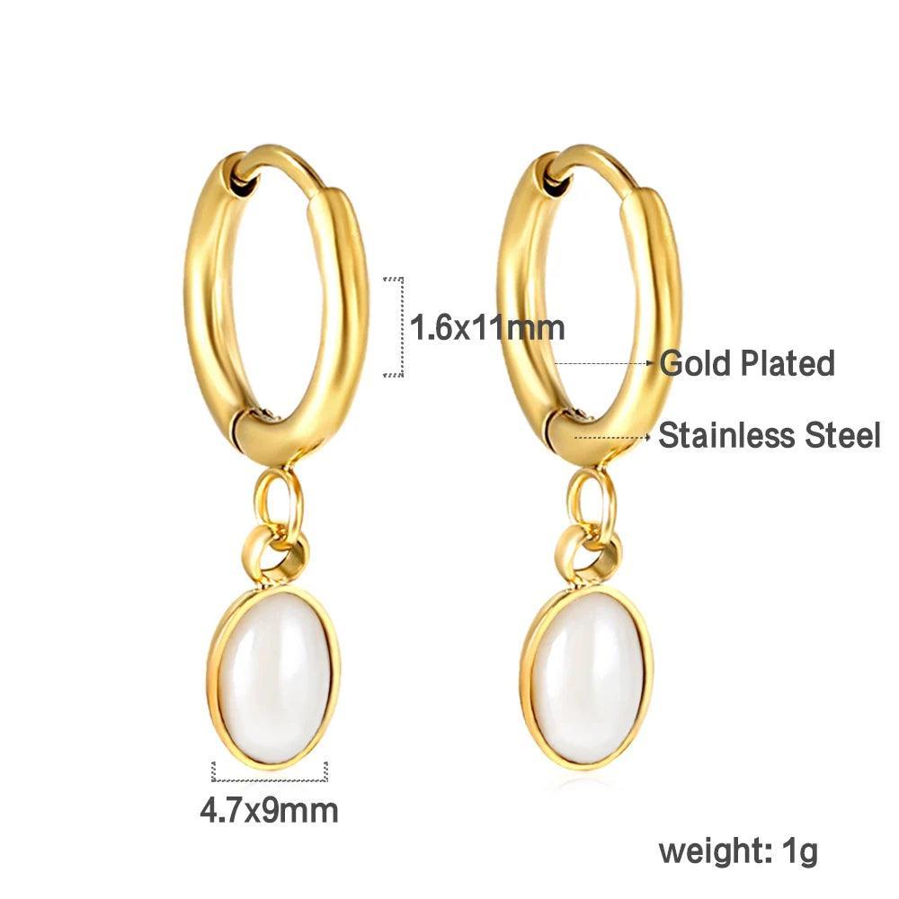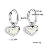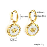 Stainless Steel Geometric White Shell Heart Round Square Shape Bee Moon Crown Hoop Earrings For Women, Girls
