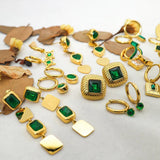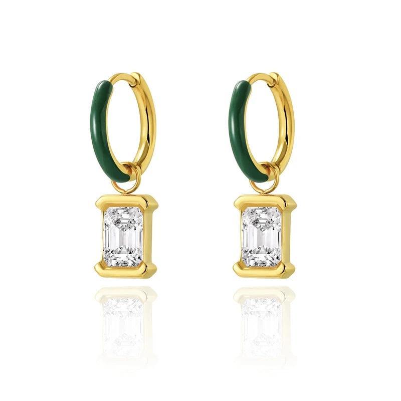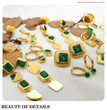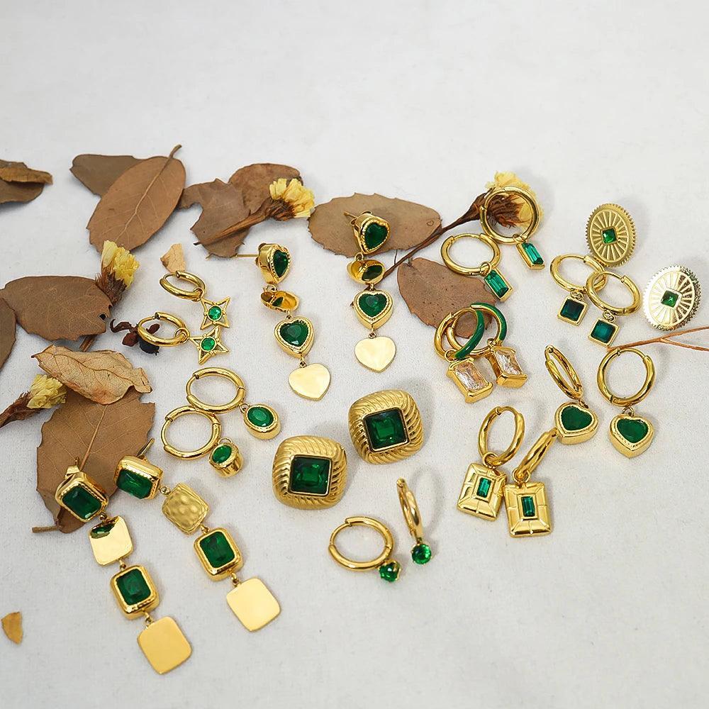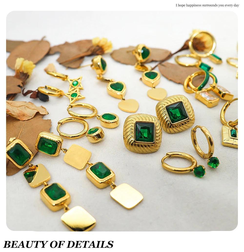 Trendy Green Zircon Crystals Stainless Steel Drop Luxury Charm Dangle Earrings for Women and Girls