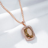 Amazing Rolled 14K Rose Gold Oval Brown AAA Zircon Crystal Necklace - Fashion High Quality Jewellery