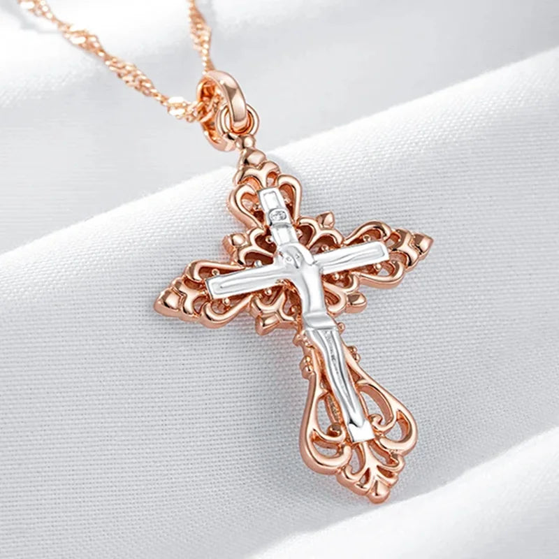 Classic Outstanding 14K Filled Rose Gold Cross Pendant Necklace for Women Men - Luxury Religious Jewellery