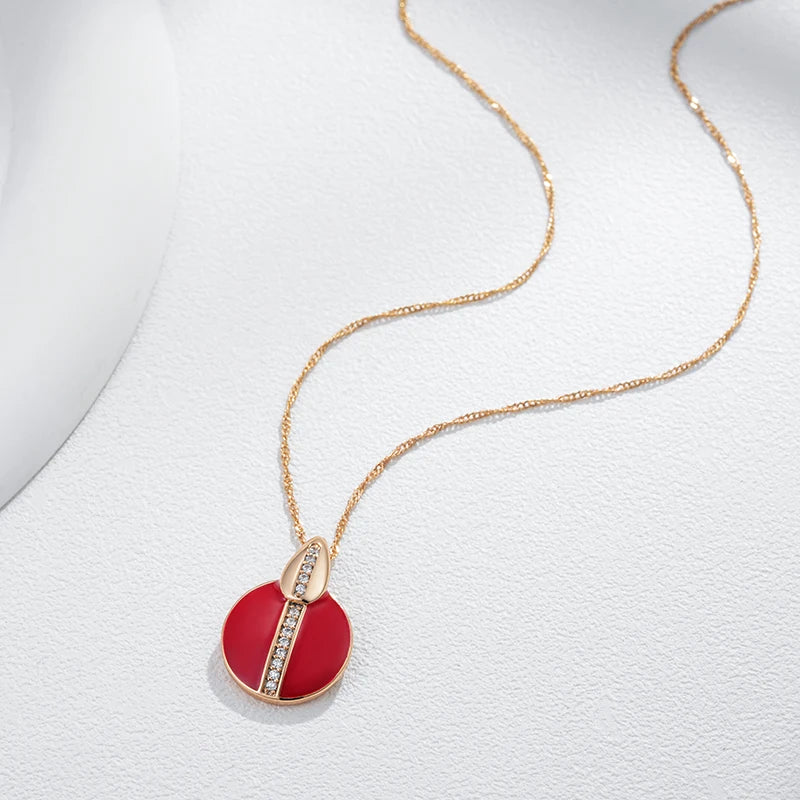 Luxury Fashion 14K Rolled Rose Gold Red Enamel AAA Zircon Diamonds Necklace For Women - Party Daily Jewellery