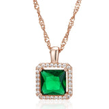 Superb Square Green 14K Rolled Rose Gold AAA Zircon Crystal Necklace For Women - Luxury Crystal Jewellery