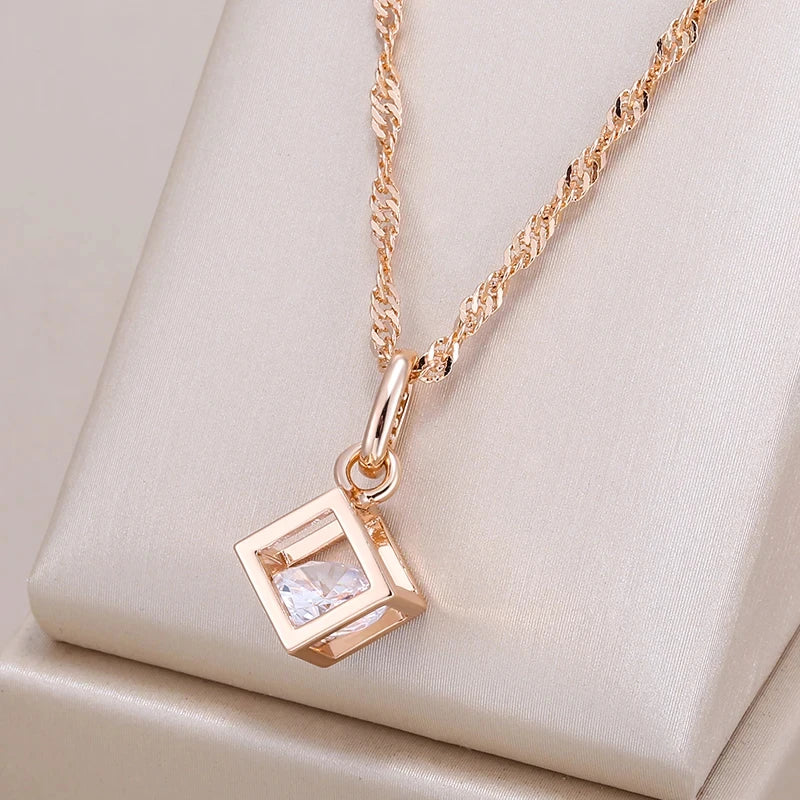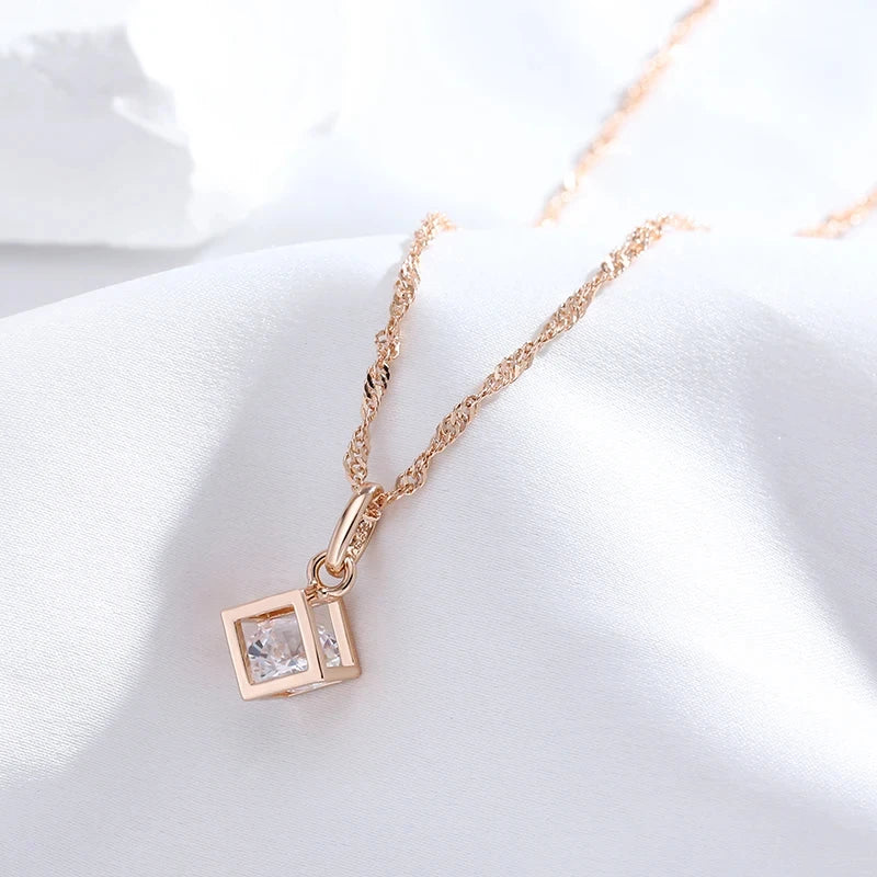 Unique 14K Rolled Rose Gold AAA Zircon Crystal Rubik's Cube Shaped Necklace For Woman - Fashion Cute Jewellery