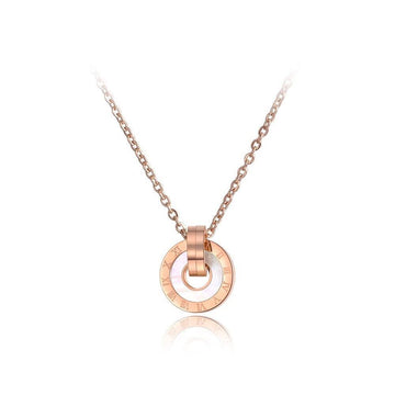 Mosaic Stainless Steel Shell & Acrylic Double Circle Pendant Necklace