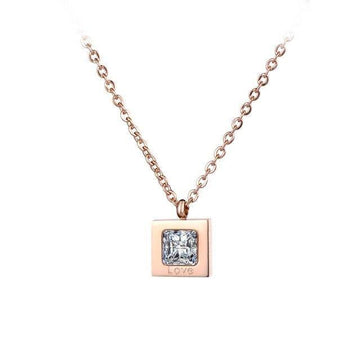 Rose Gold Color Collarbone Necklace Chain AAA+ CZ Diamond Square Pendant