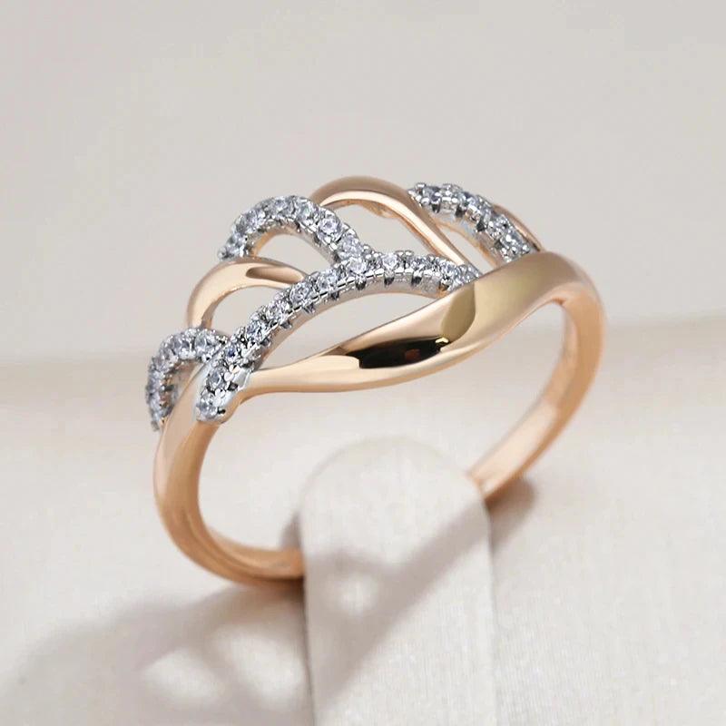 Luxury Crystal Flower Design 14K Rolled Rose Gold AAA Zircon Diamonds Fashion Wedding Rings - Fine Jewellery