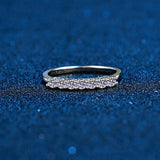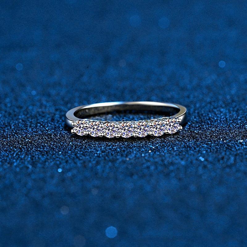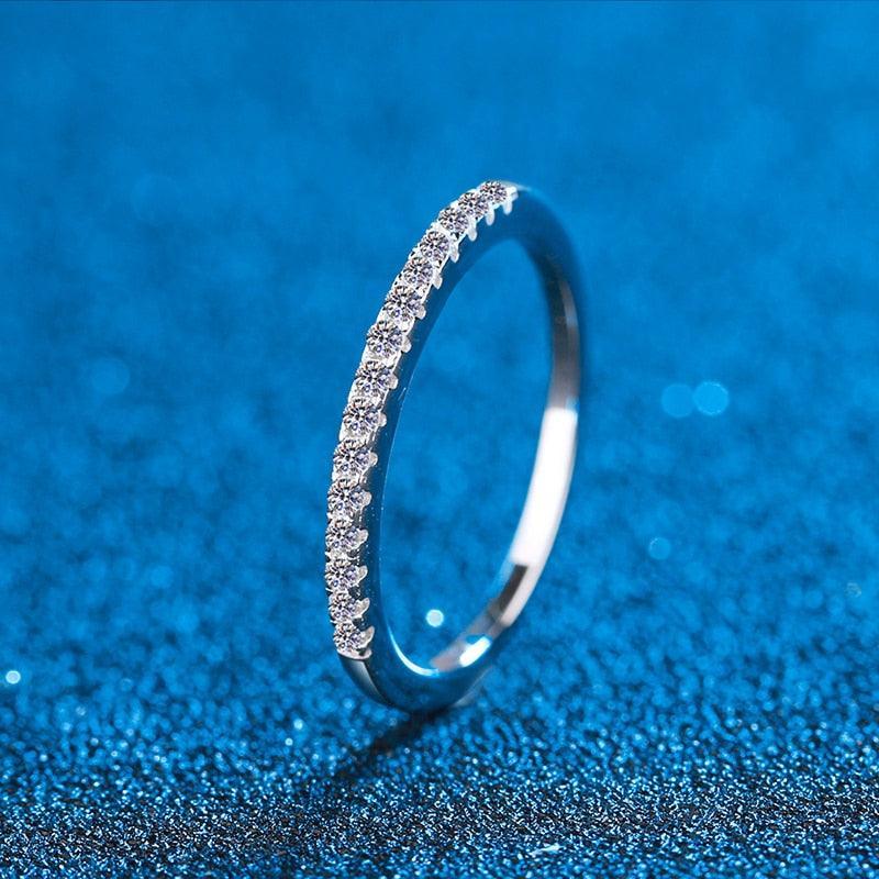 VVS moissanite stones go through half of the wedding rings for women.The stones shine as real diamonds