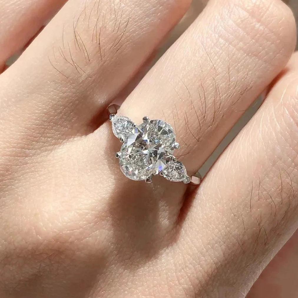 3-Stone GRA Certified 2CT Oval Cut Moissanite Diamonds Ladies Rings 925 Silver Engagement Wedding Band Jewellery