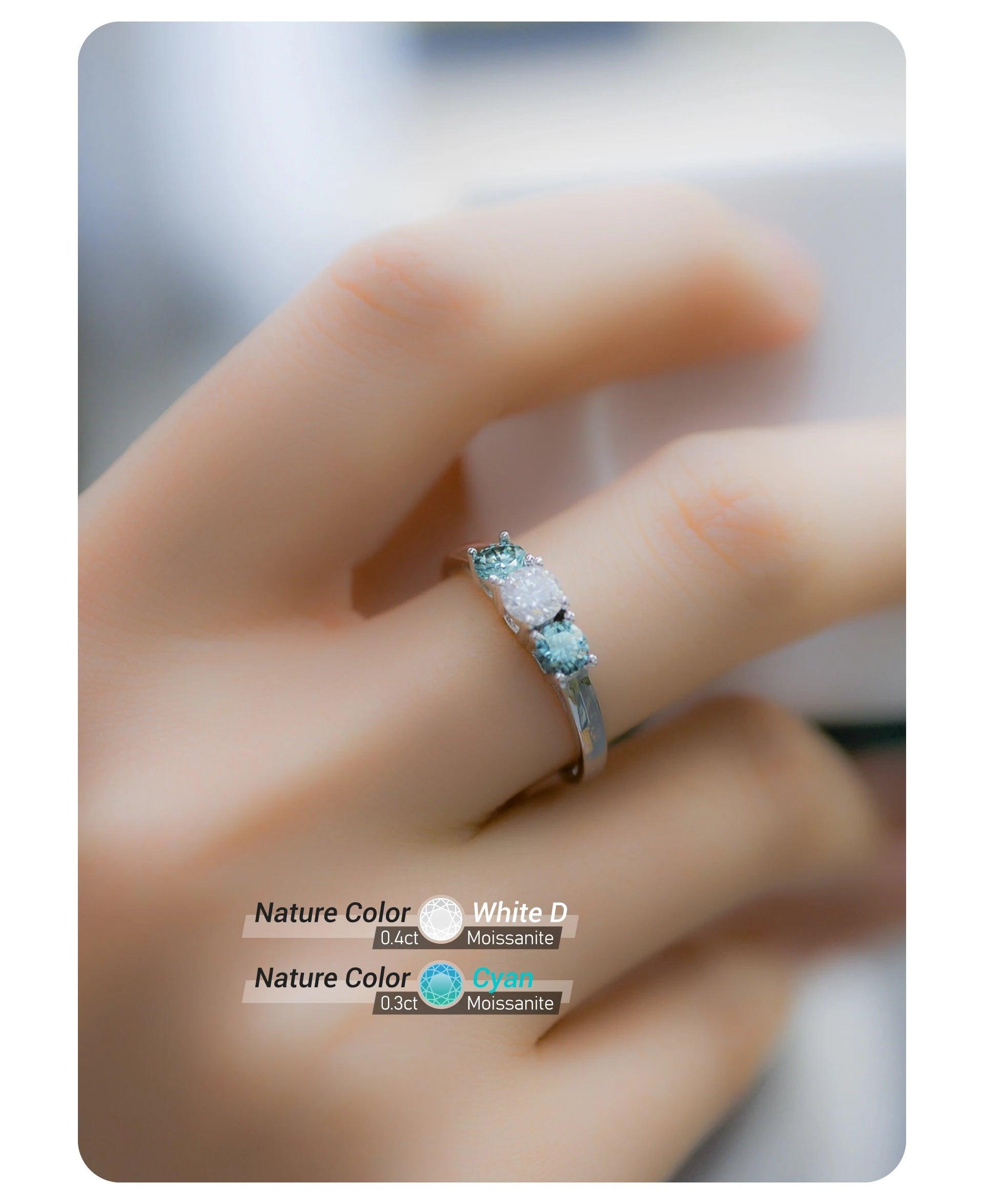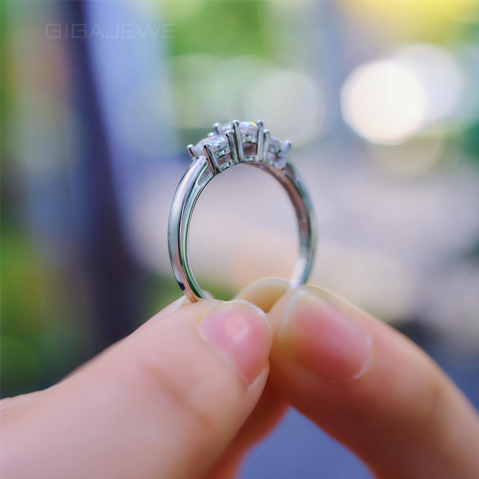 Amazing 1.0ct 4.5mm+2X4.0mm Round Cut D VVS1 Moissanite Diamonds 925 Silver Wedding Engagement Rings for Women