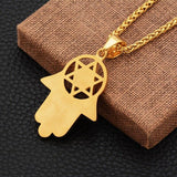 NEW ARRIVAL Jewish Star Of David Hasma Hand Of Fatima Gold Color Pendant Necklaces for Men and Women