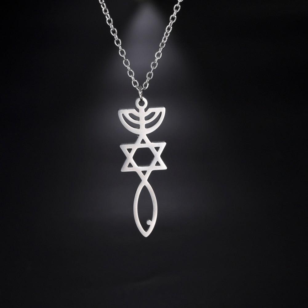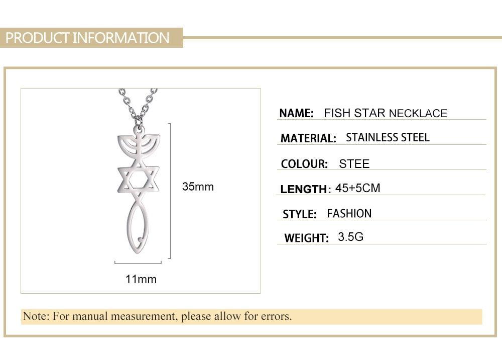 Messianic Pendant Menorah David’s Star with Fish Symbol Carved Jewelry Holy Land