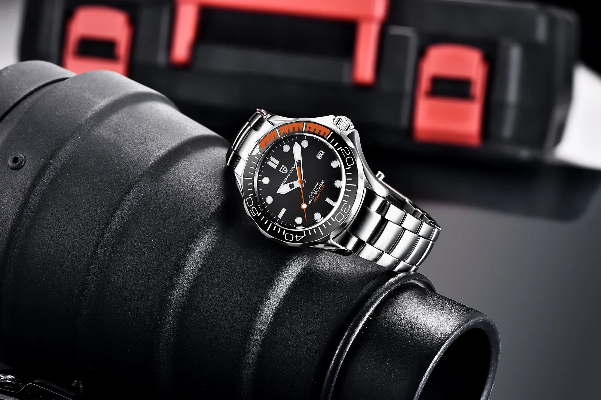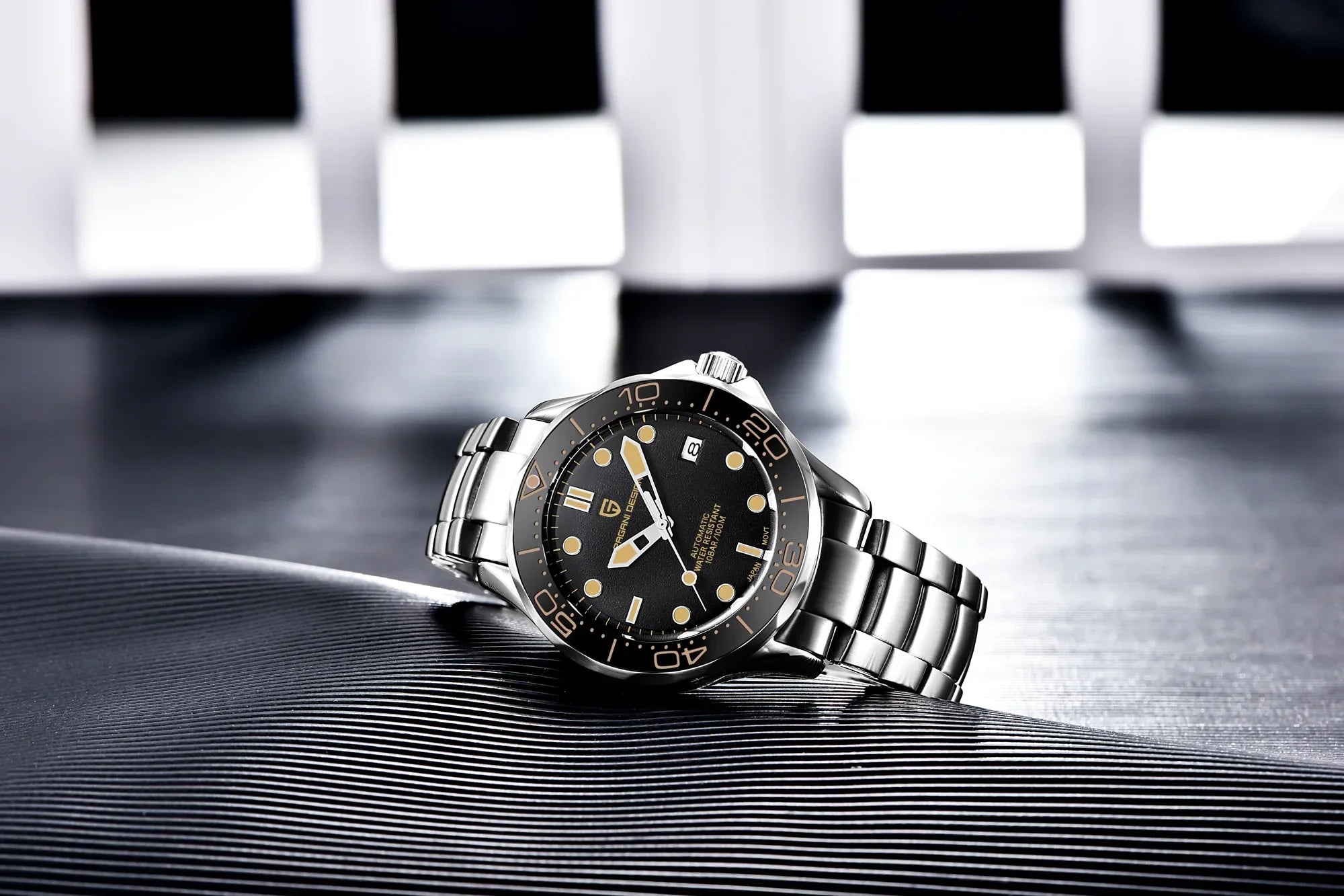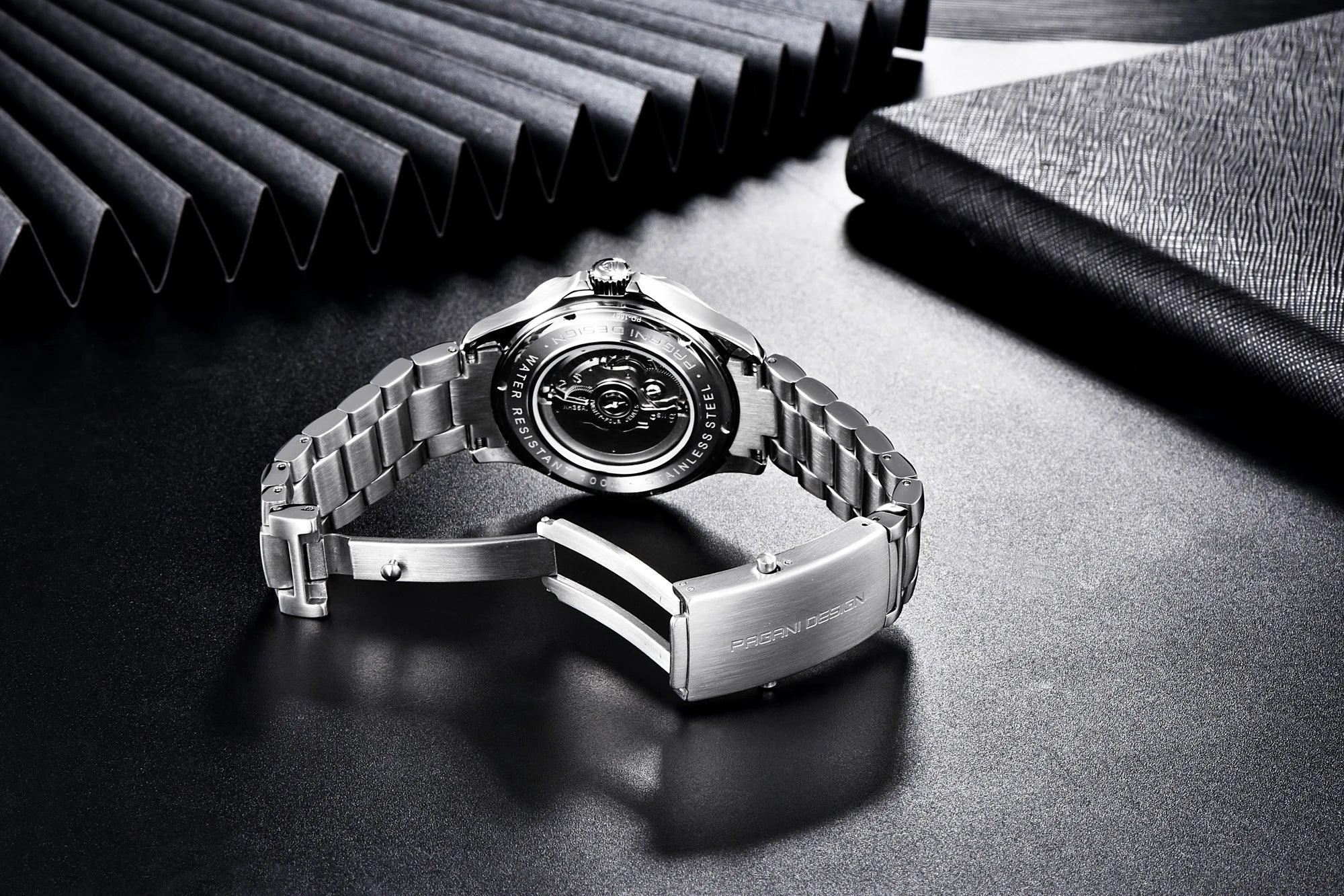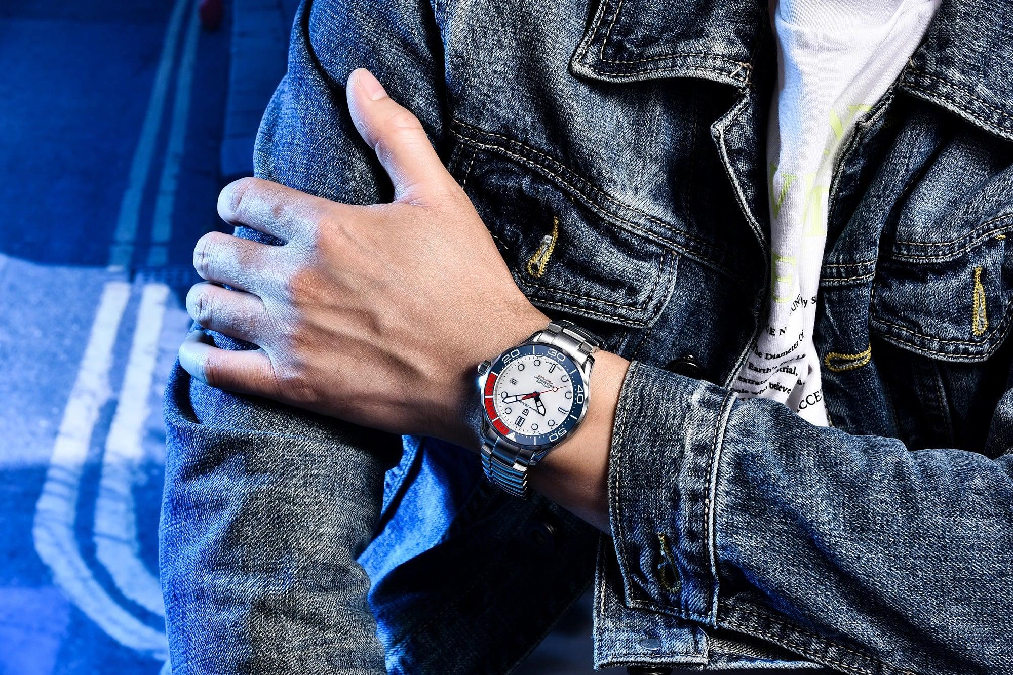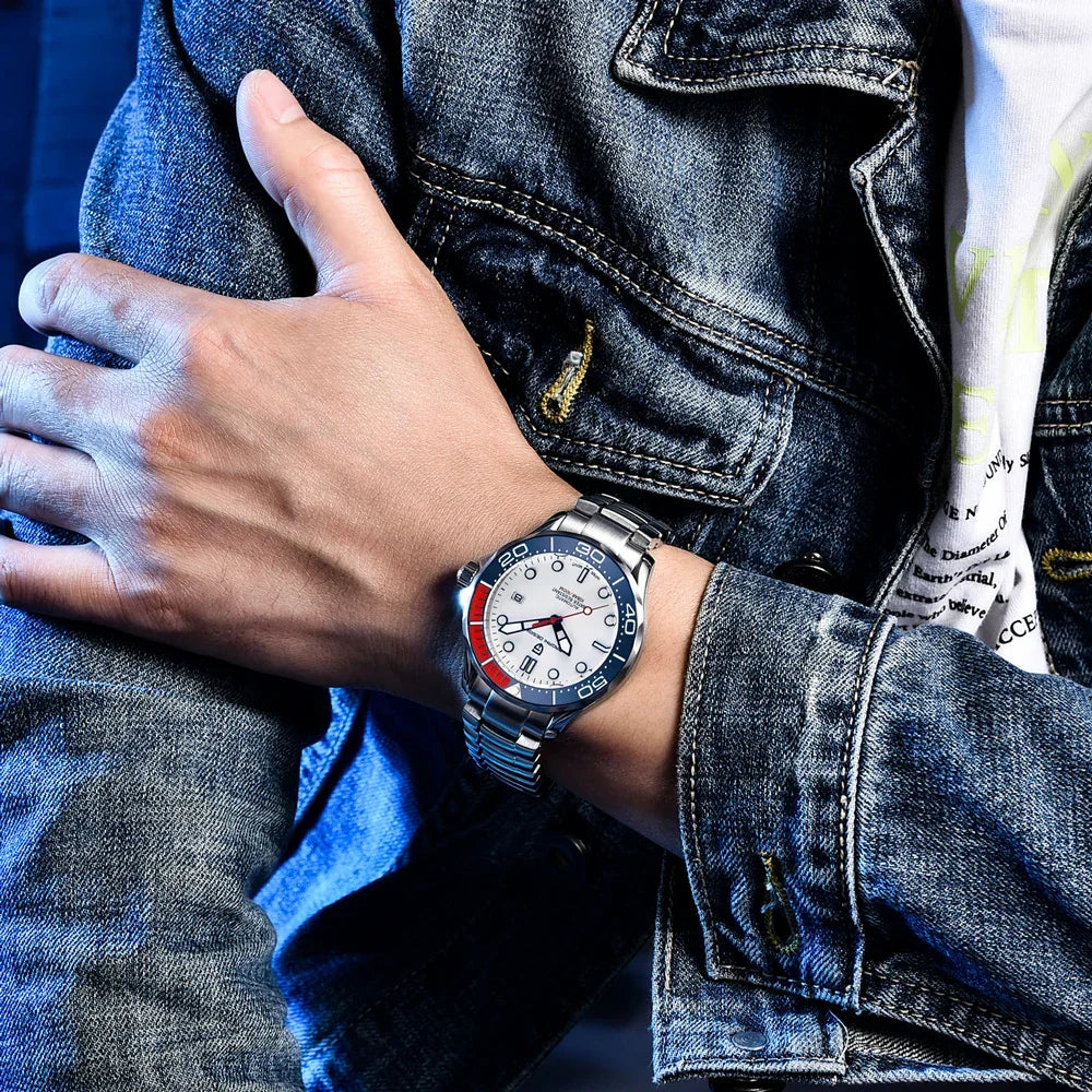 Presenting the New Top Brand Men's Watch 007 Commander, a luxury mechanical watch that boasts a 100m waterproof rating and a calendar feature, utilizing the Japan NH35 movement. This watch serves as a fashionable and refined accessory for today's man. Be sure to take advantage of our ongoing sale on men's watches, where you can enjoy remarkable discounts without sacrificing style or quality. This is the perfect moment to investigate new choices and potentially find your next cherished timepiece at an extraordinary price.