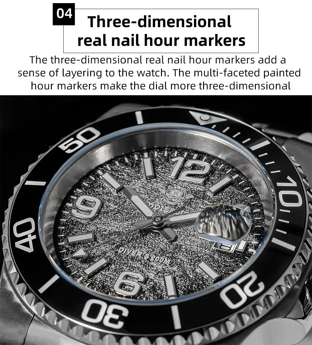 Surface technology: 3D oil pressure + real studs luminous hour markers