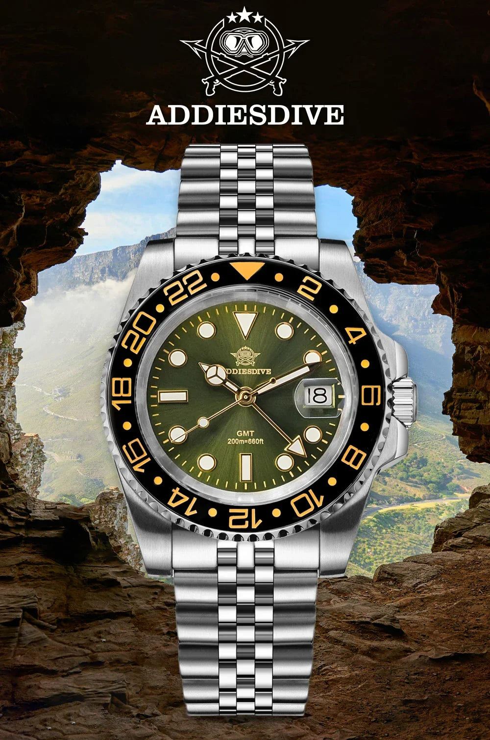 Top Brand New GMT Movement Quartz Watches, Stainless Steel BGW9 Luminous 20Bar Waterproof Diver Watch For Man