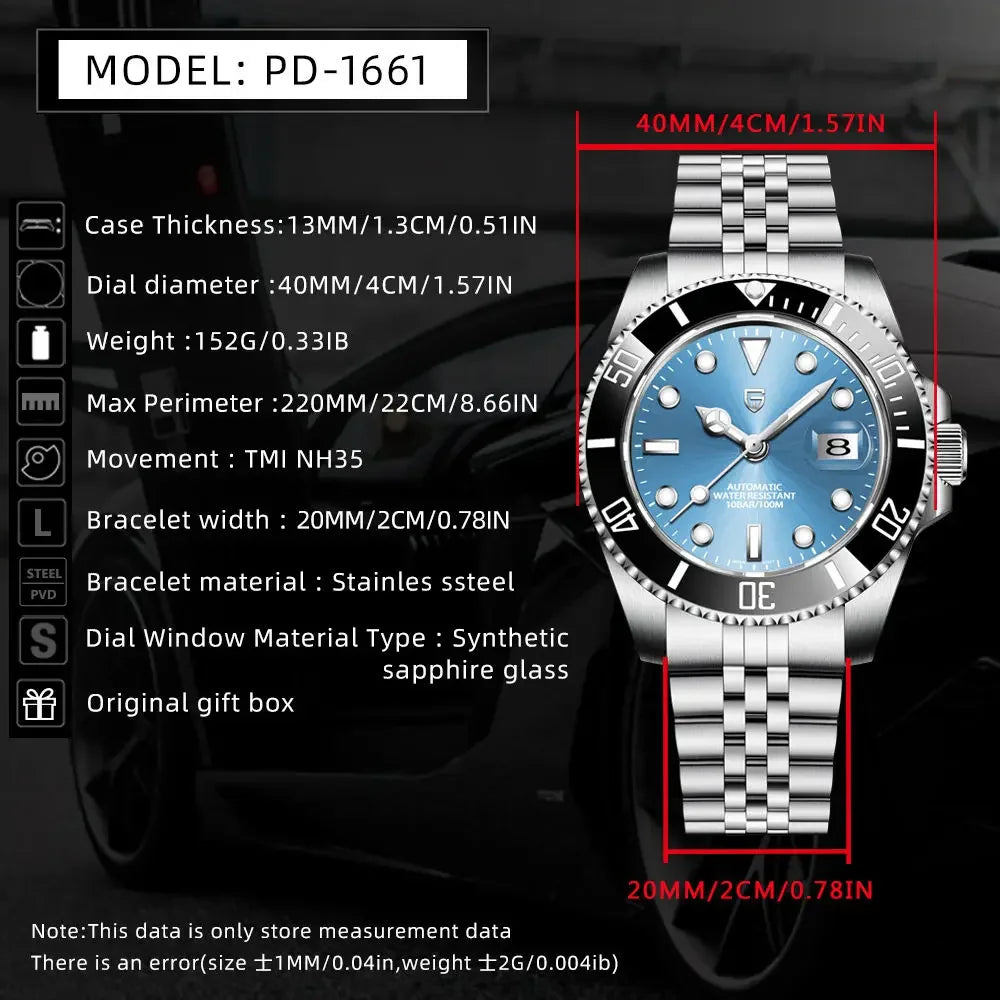 Top Brand PD1661 Water Ghost Watch Luxury Automatic Mechanical Watches NH35 Auto Date Sport Dive BGW-9 Watch For Men