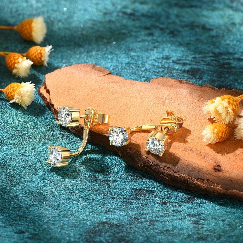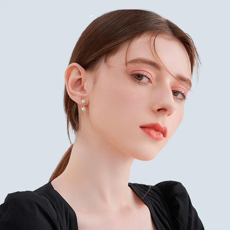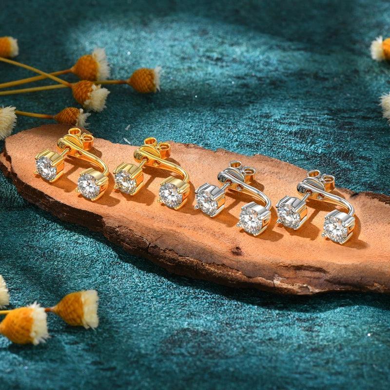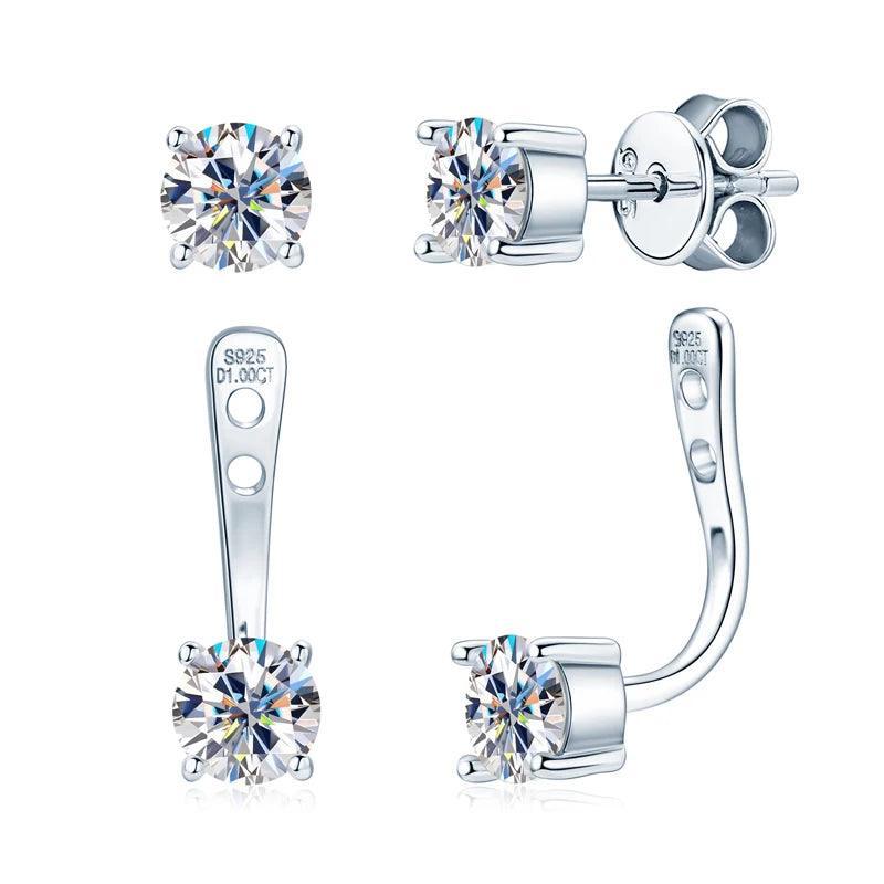 Front Back Double Sided 5MM Moissanite Diamonds Stud Earring For Women - 2 in 1 Pierced Earrings Fine Jewellery