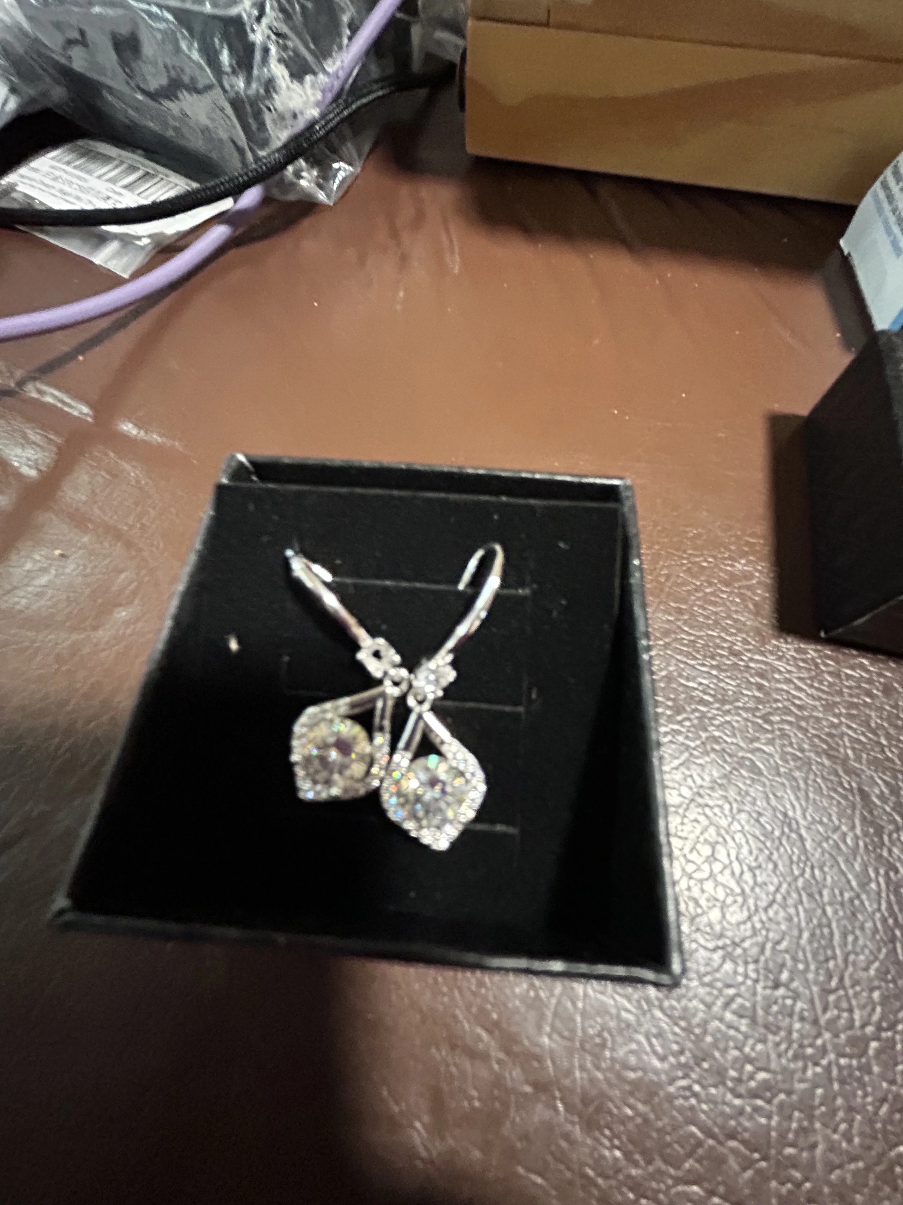 Beautiful earrings. Property is much more than usual rhinestones. It's probably silver, because I didn't get an allergic reaction. Only minus that the part of the earring that is inserted into the ear is quite small. I'll be doing it because the earrings are pretty. I would buy again. Hard to capture in the shot.