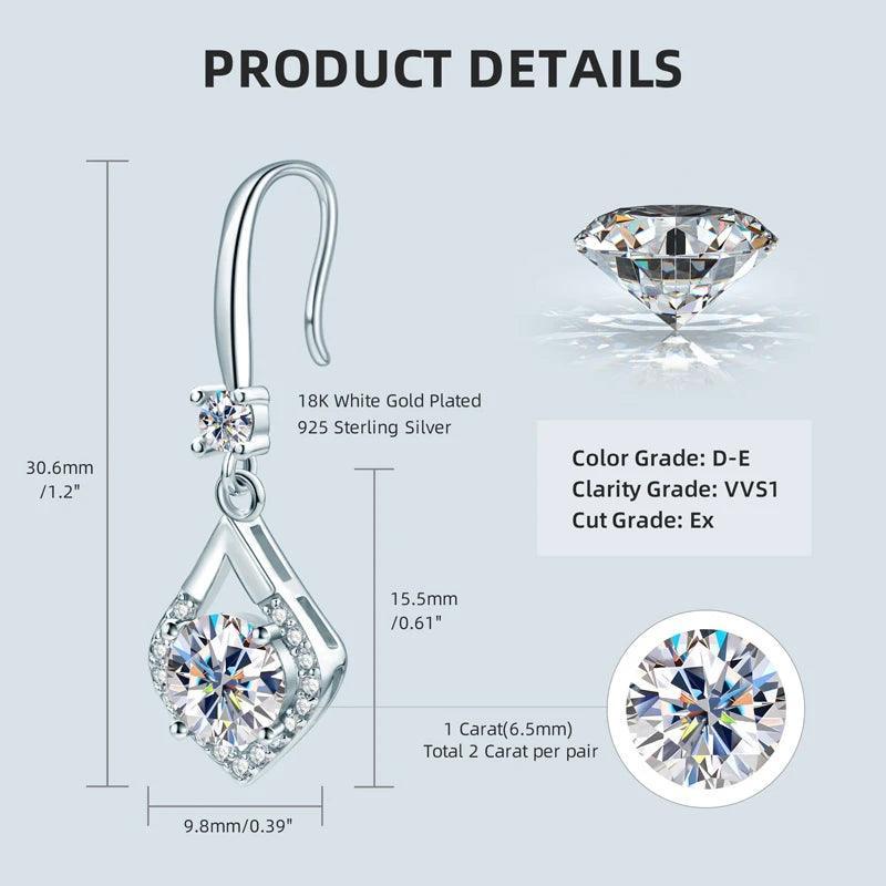 Marvelous 2.0ct VVS1 Moissanite Drop Hook Earrings - Dangle Earrings for Special Occasions Fine Jewellery