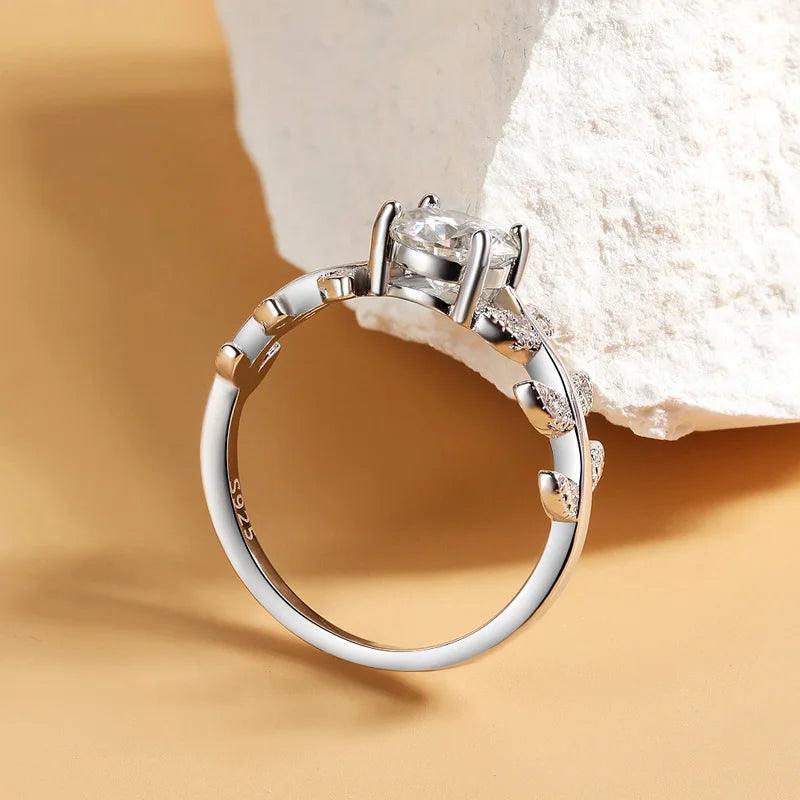 Fabulous Real 1ct Moissanite Diamond Leaf Rings S925 Silver 18k White Gold Colour Wedding Fine Jewellery With GRA