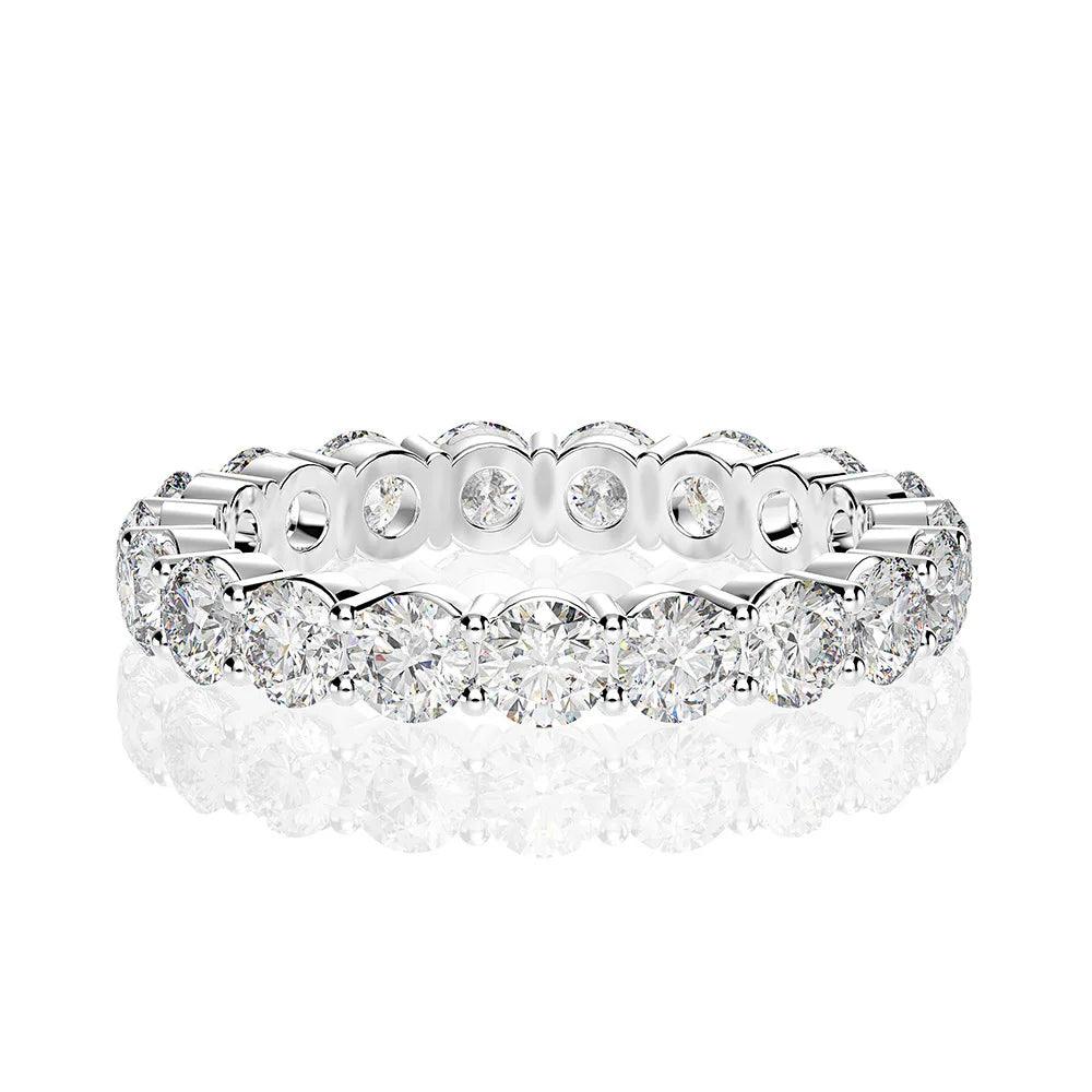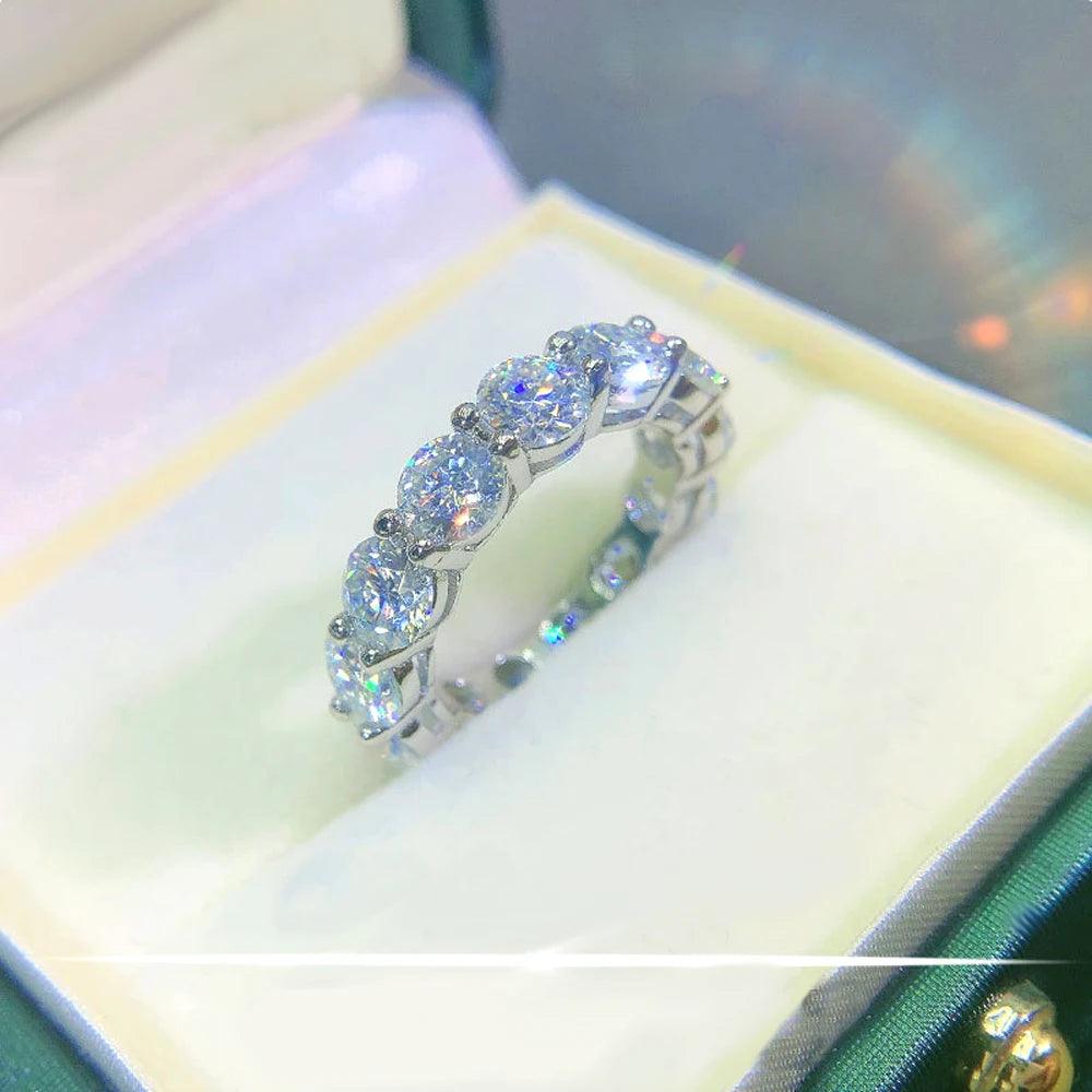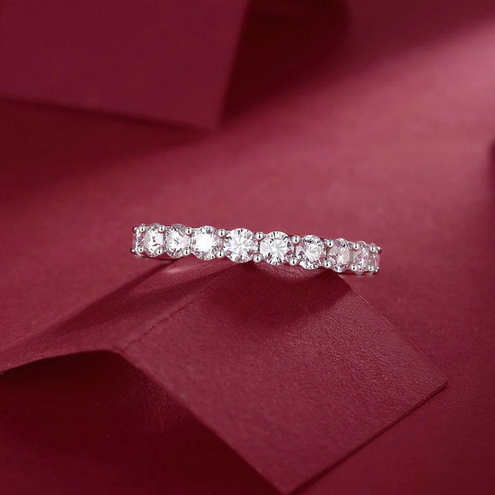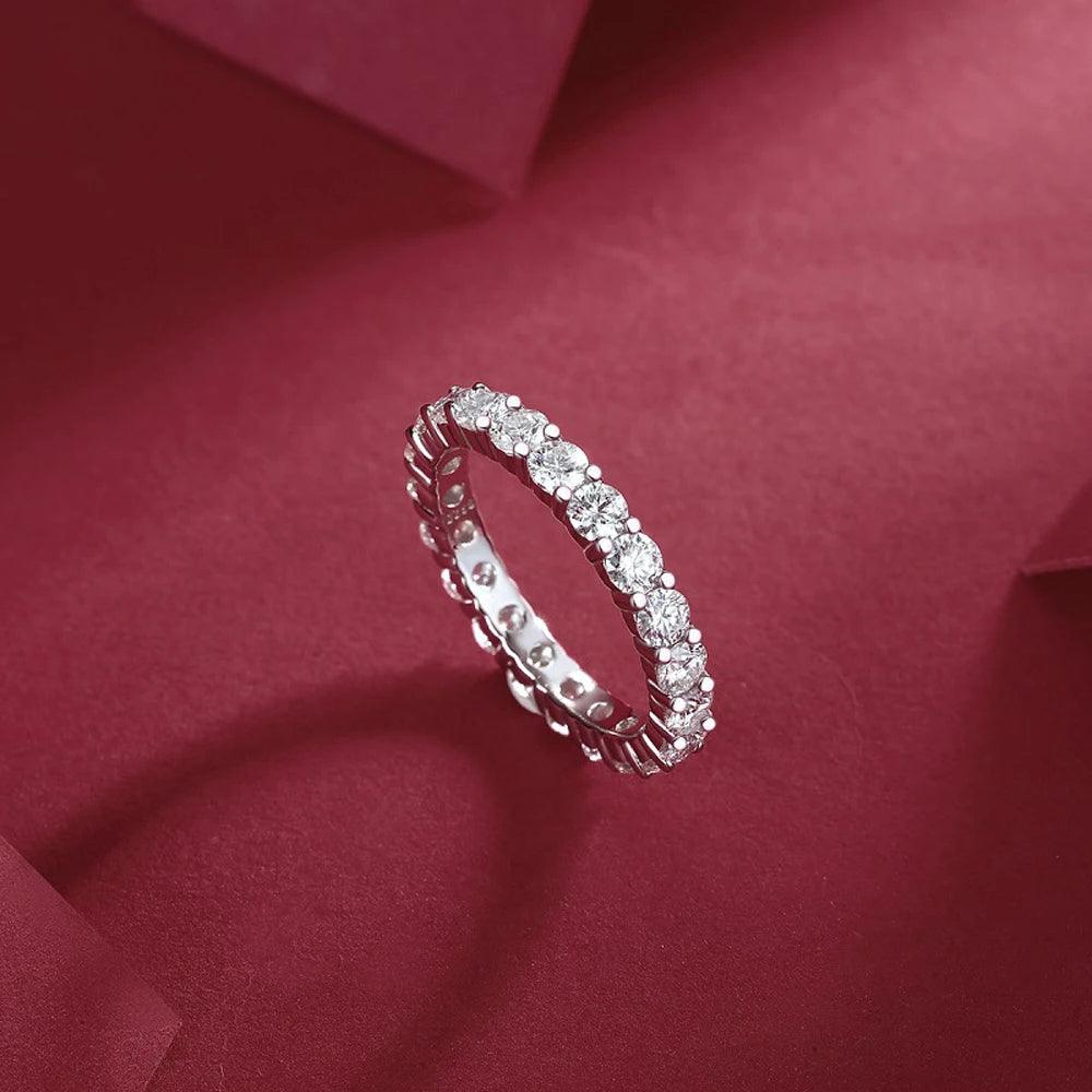 Eternity Engagement and wedding rings are timeless symbols of love and commitment, and the Lovers Round Full Moissanite Ring is an exceptional choice for those wishing to celebrate their union. With a total weight of 0.3/0.5 carats, this Exquisite piece is adorned with VVS1 quality moissanites, which shine with a brilliance comparable to that of diamonds. The purity and clarity of these gemstones make them an ideal choice for an eternity ring, representing eternal and steadfast love.